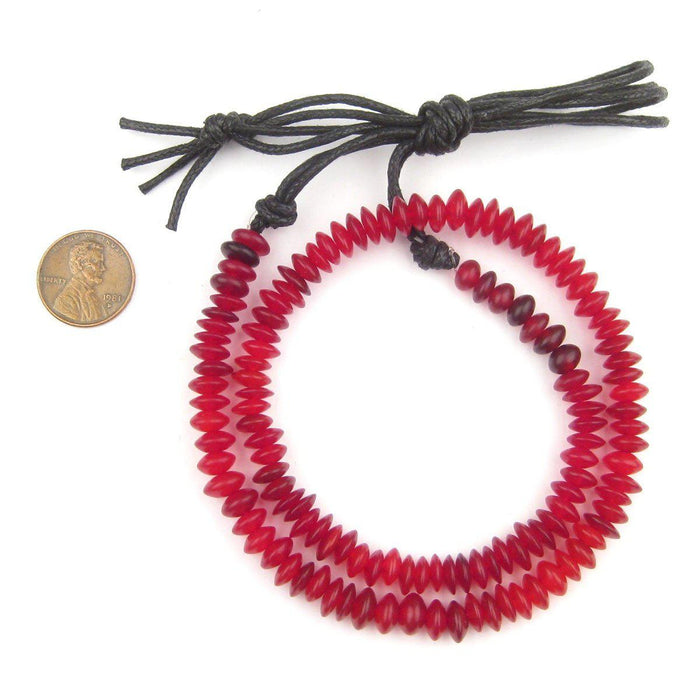 These red color saucer beads are made from natural horn. The slight variations in colors and shape of the beads will make them a fun addition to your beading project. Look carefully and you will see that each bead is unique. Individual beads measure 3-5 x 6-8mm diameter with approximately 120 beads on each 20" strand. Use them as spacers or accent beads. Take note that the length of these strands are longer than usual, and finished with a nice black cord. The rustic character of these beads is sure to add an authentic touch to your jewelry designs!