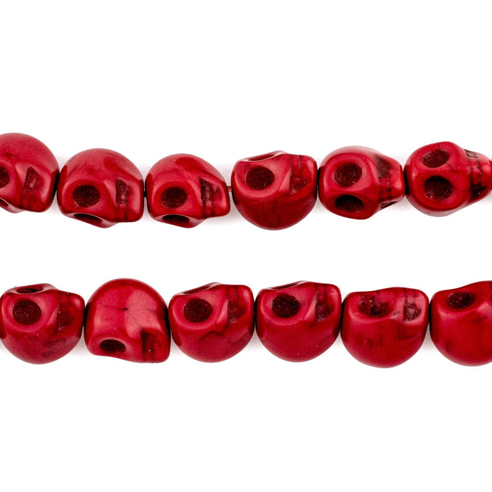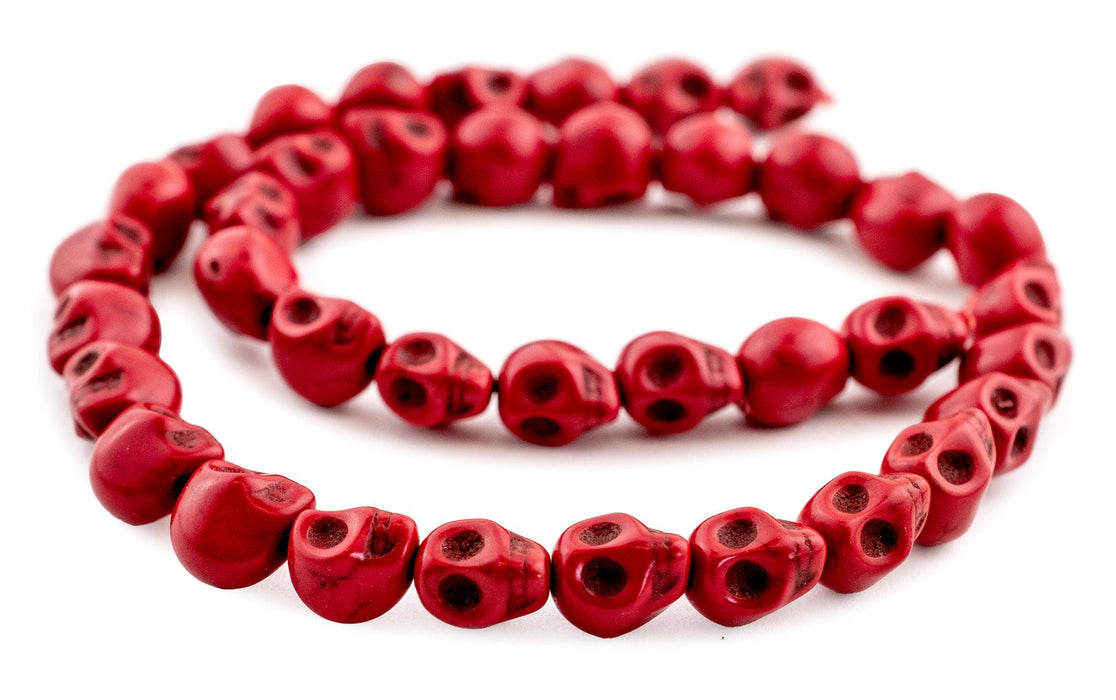 These Cherry Red Skull Beads boast an attention grabbing look that's sure to spice up your design and craft projects. These carved stone beads look great when mixed in with traditional bead styles and help create a textured eclectic look. Great for Halloween inspired and goth style design projects. Each bead measures about 10 x 10mm with a hole size of approximately 1mm. You will receive a full strand measuring roughly 15". Add a playful touch to your crafting projects today.