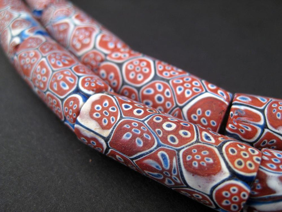Antique Red White Blue Venetian Millefiori African Trade Beads (Long Strand)