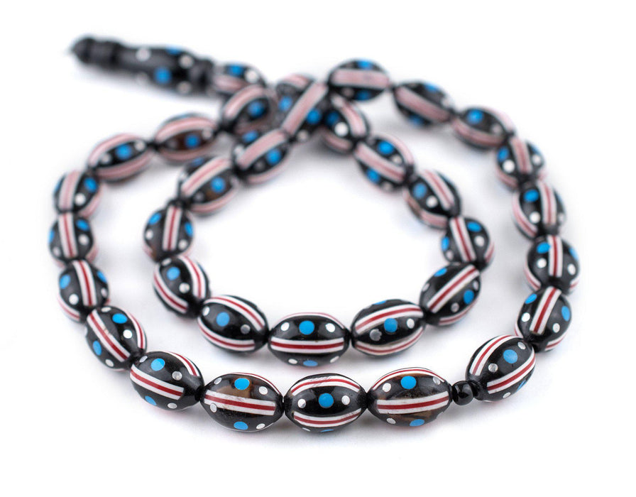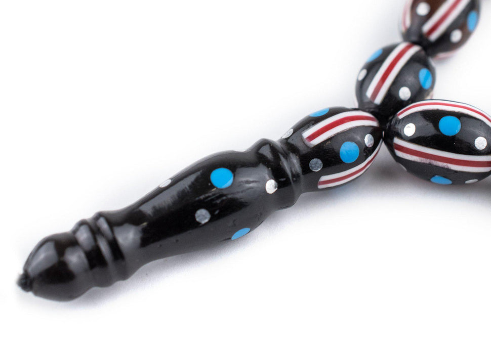 Red, White & Blue Inlaid Arabian Prayer Beads (14x9mm)