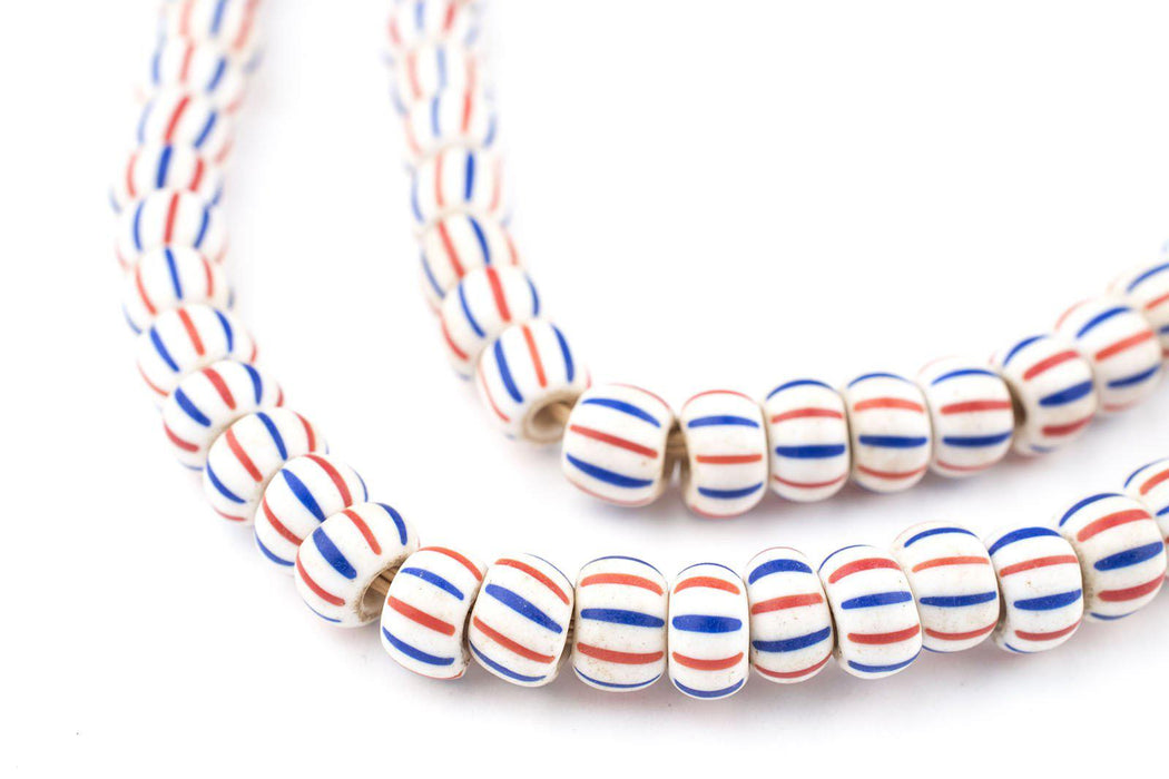 Red White & Blue Matte Ghana Chevron Beads (7mm)