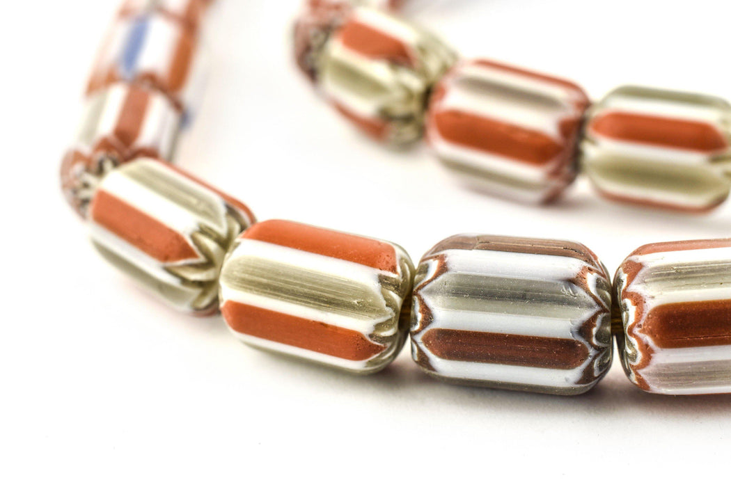 Take a look at this incredible strand of Nepali Chevron beads. These beads are inspired by older Chevron beads, which are highly sought-after by bead collectors and bead lovers alike. They are considered among the classic beads of the African Trade. The first Chevron beads were made from Murano glass in the late 15th century and were characterized by their unique rosetta or star design made by alternating layers of glass. Over the subsequent centuries, Chevron beads were made for trade throughout Africa as well as the Americas where they may have been introduced by Christopher Columbus. These beads measure approximately 11-12 x 8-9mm in size (bead size may vary), with strands measuring approximately 24.5". Limited supply available. Strand may vary slightly from photograph. Up to several beads per strand may be chipped due to extensive travel. Get your strand today!