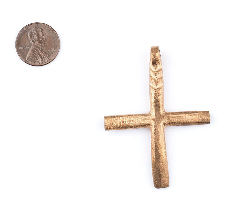 Ridged Copper Ethiopian Cross Pendant (50x45mm)