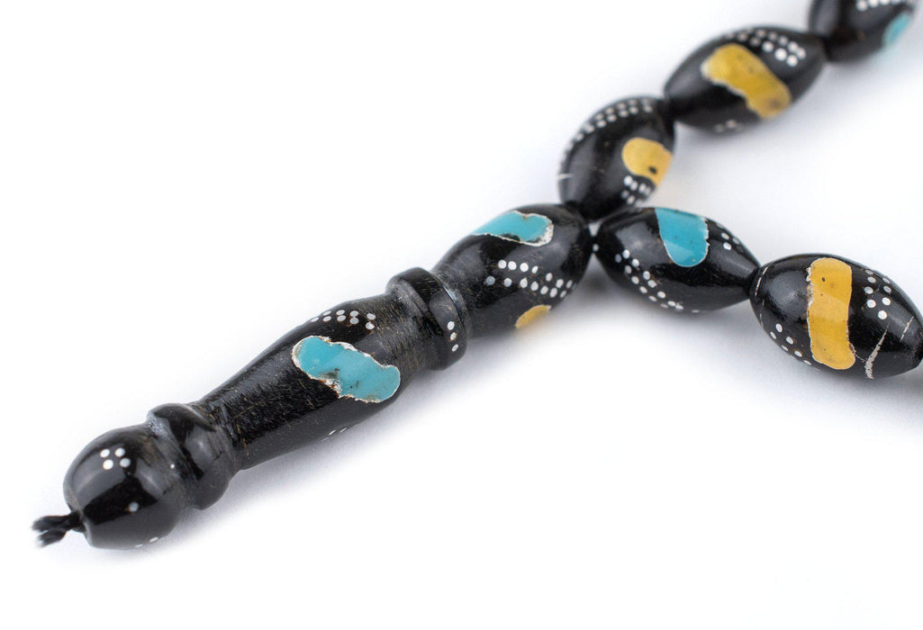 Riyadhi Silver-Inlaid Black Coral Arabian Prayer Beads (14x8mm)