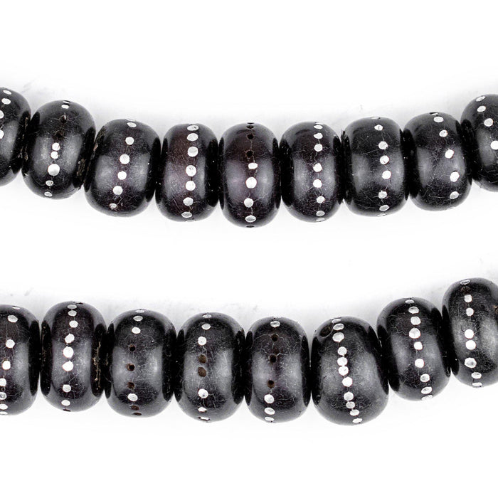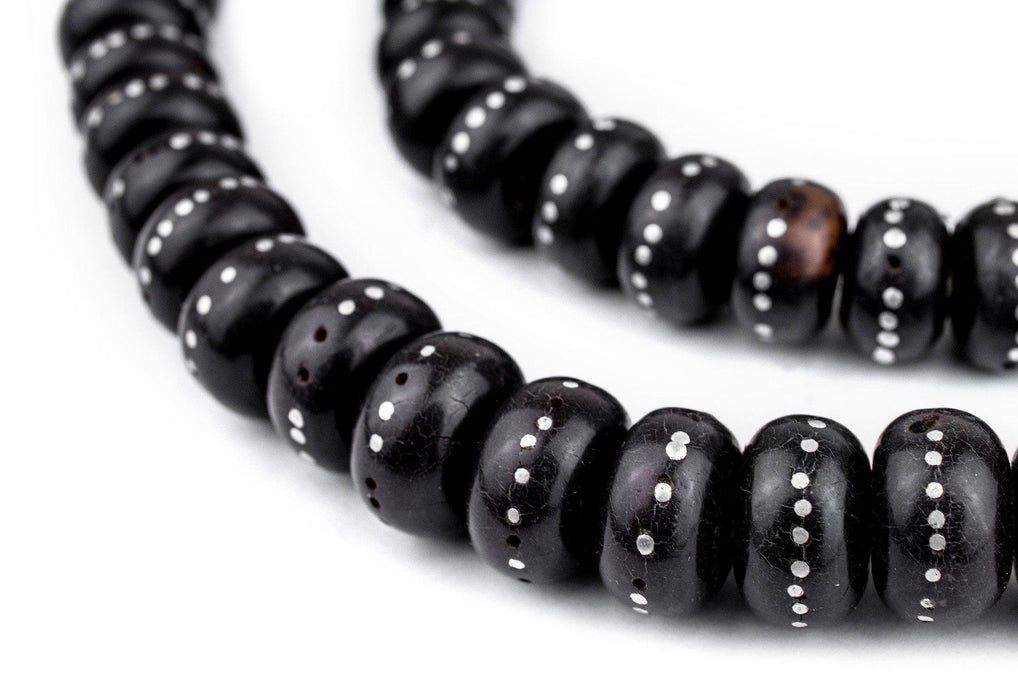 Rondelle Antique Inlaid Yemenite Black Coral Beads
