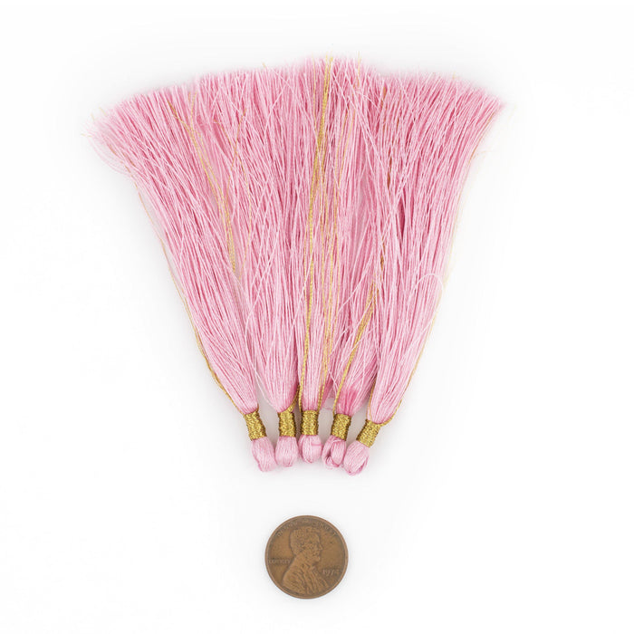 Look no further! These genuine silk tassels have been individually handmade by an expert of the craft. They are crafted from authentic Indian silk which is highly refined and world renown. Specially made for The Bead Chest, each high quality tassel is wrapped with a gold thread. Available in 20+ fun colors and 4 different sizes, you’ll find in our collection a tassel for almost every need. Each purchase of these pink tassels will ship as a pack of five pieces. Individual tassels measure approximately 9cm or 3.5 inches in length. May be used in jewelry designs, home decor, and art projects galore. Mix and match your favorite styles today!