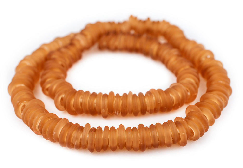 Take a look at this fabulous strand of annular wound trade beads also known as "Dutch Donuts." Trade beads like these have traveled multiple continents and have graced numerous owners. Beads may have small chips or corrosion due to their age and extensive use. It is very rare to find such a strand in this rare rose color, and in such good condition.