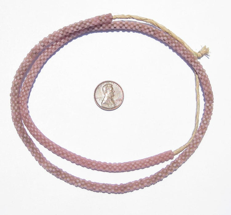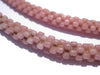 This strand of interlocking Czech glass beads is called "SNAKE" trade beads because of its similarity to the snake vertebrae. They date back from the early 1900's. These beads have been molded and the strand is in pretty good condition. This is a rose color strand and is great to be used as spacers. The beads are about 5mm in diameter by 2mm in width, and tones may vary slightly with a few beads of other colors possibly interspersed. This 'star' variety of snake beads is rare and much more difficult to find.