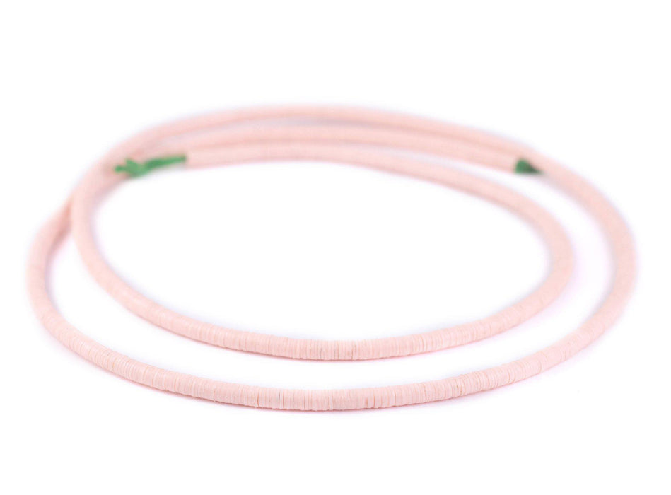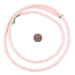 Take a look at this beautiful strand of African vinyl beads in a cool pastel pink. Beads such as these are found in Ghana and Nigeria where they are sometimes worn as waist beads. Older versions of vinyl beads were said to be made from recycled phonograph records. This strand measures approximately 34" long with individual beads measuring 0.28 x 4mm. These beads are light and fun to wear and also versatile for jewelry designs. Each strand is sold individually.