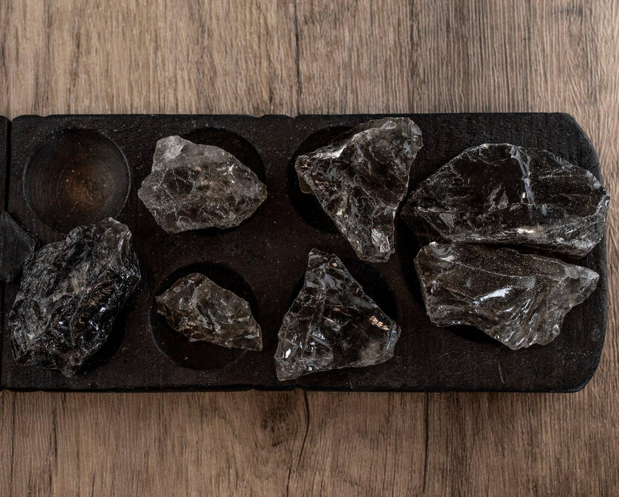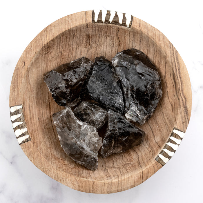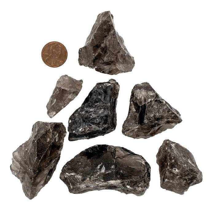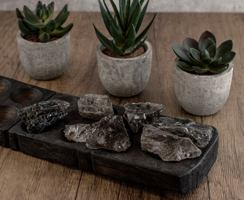 These shimmering Smoky Quartz Crystals can make a great addition to your home decor and jewelry design kit! These raw gemstones are cut from natural Black Smoky Quartz deposits and have a rough eye catching texture. Their distinct black translucent hue make them the perfect accent for all sorts of settings, whether you’re creating for a dramatic wire wrapped pendant necklace or adding an elegant touch of decor around your home. Each stone measures approximately 12-25 x 40-55mm. These stones are not drilled so they do not have a stringing hole. Each pack comes with about 4 to 7 individual stones. These stones work best when paired with wire wrapping jewelry design techniques. With their unique shape and deep black color, these Rough Smoky Quartz Gemstones are perfect for any type of jewelry design or craft project you have in mind!