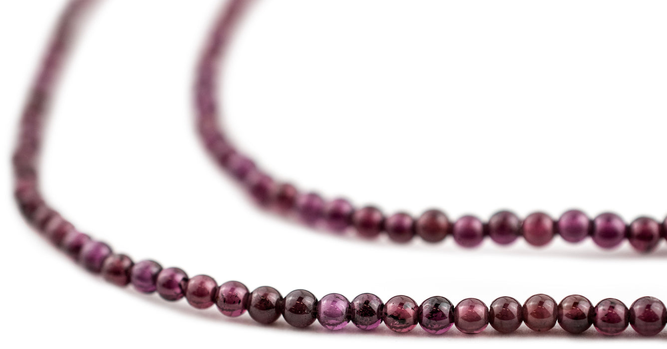 This strand of purple hued Garnet beads will add subtle beauty and color to almost any design project. Each bead has an almost magical purple and reddish hue that seems to come alive in the right light. Crafted from natural gemstones, these beads are round and consistent in shape and size, allowing you to create intricate designs. Sturdiness and durability make this strand of stone beads an ideal choice for jewelry making, beading, or any other craft project. Each bead measures approximately 3 x 3mm with a hole size of approximately 0.5mm. You will receive a full strand measuring approximately 16". Garnet really adds an extra special touch, making these beads a perfect choice for your next project. Grab a few strands for yourself today.
