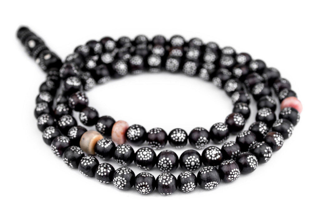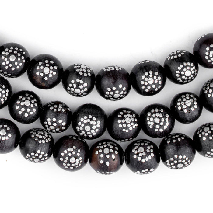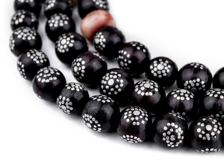 Round Antique Inlaid Yemenite Black Coral Beads