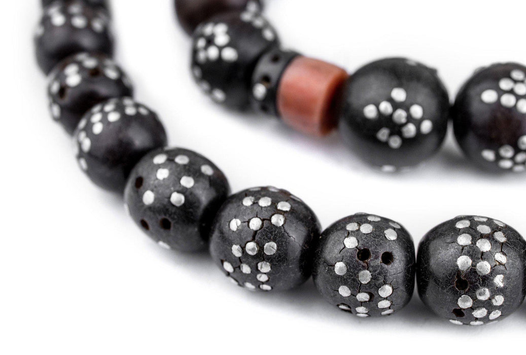 Round Antique Inlaid Yemenite Black Coral Beads