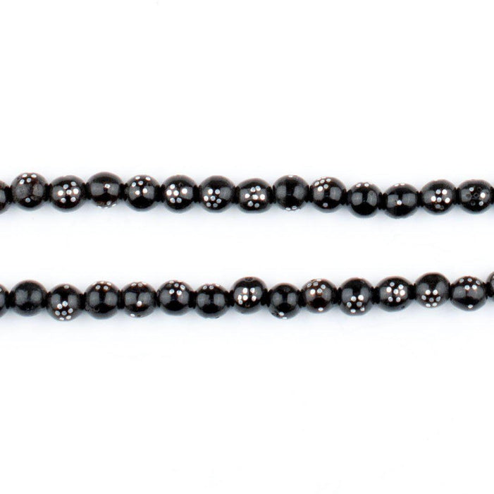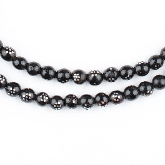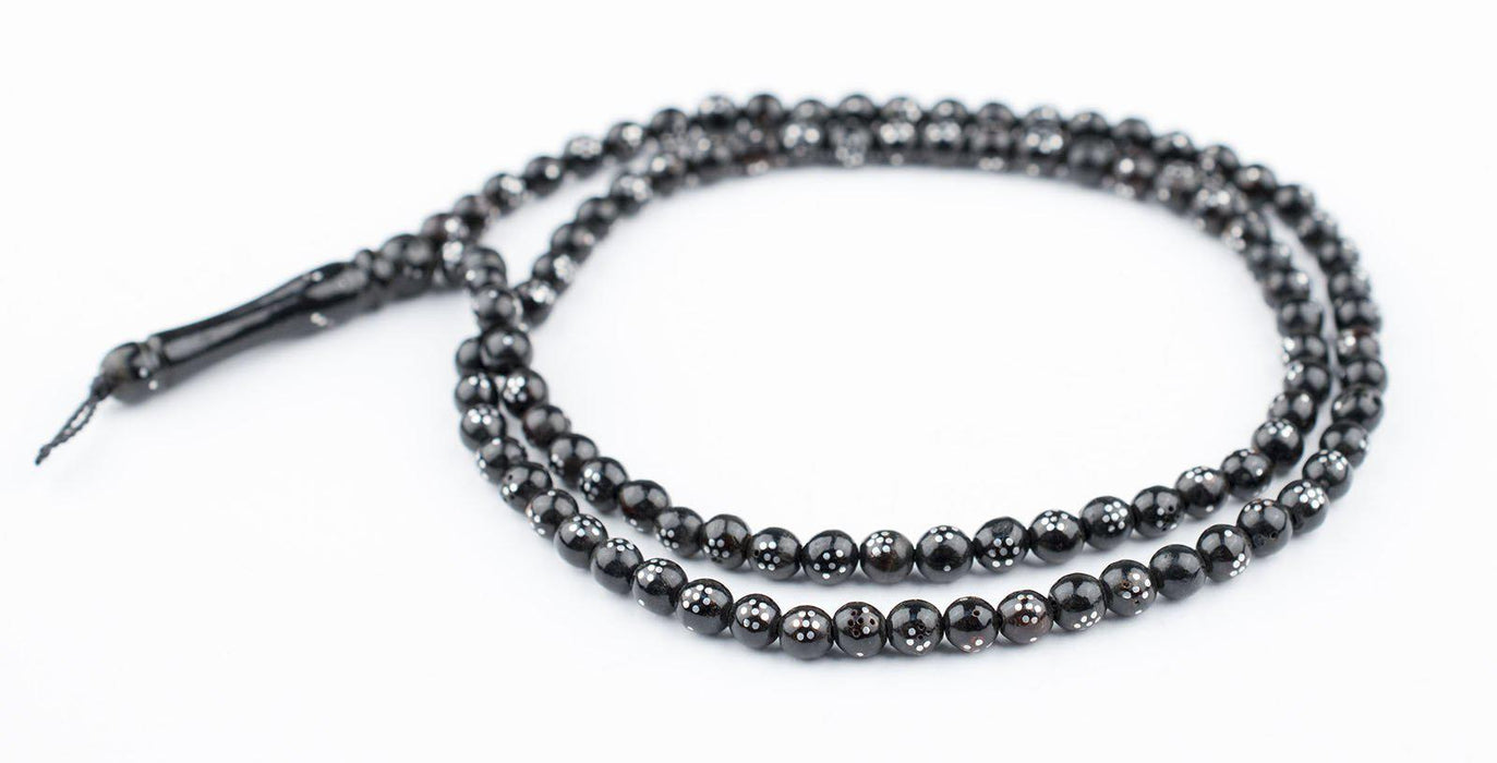 Round Dotted Silver Inlaid Black Coral Arabian Prayer Beads (5mm)