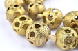 Take a look at these round-shaped Ghana Brass Trade Beads from Africa. Each bead is made individually through the "Lost Wax process" technique. This strand is about 27", with beads measuring approximately 16-19 x 16-20mm. Each strand may have 1-2 beads that are less than perfect and may vary slightly from strand pictured.
