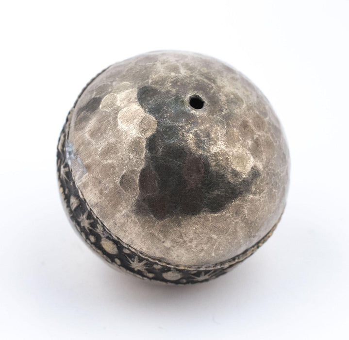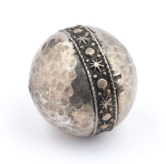 Round Hammered Silver Artisanal Berber Bead (30mm)