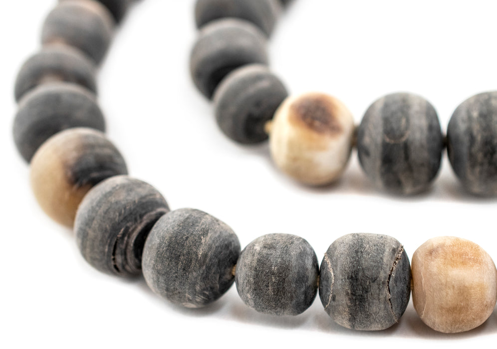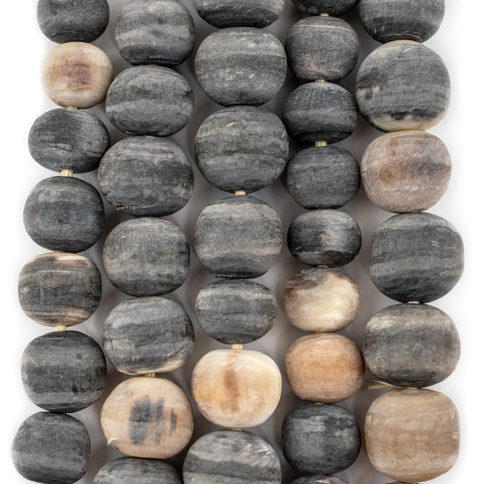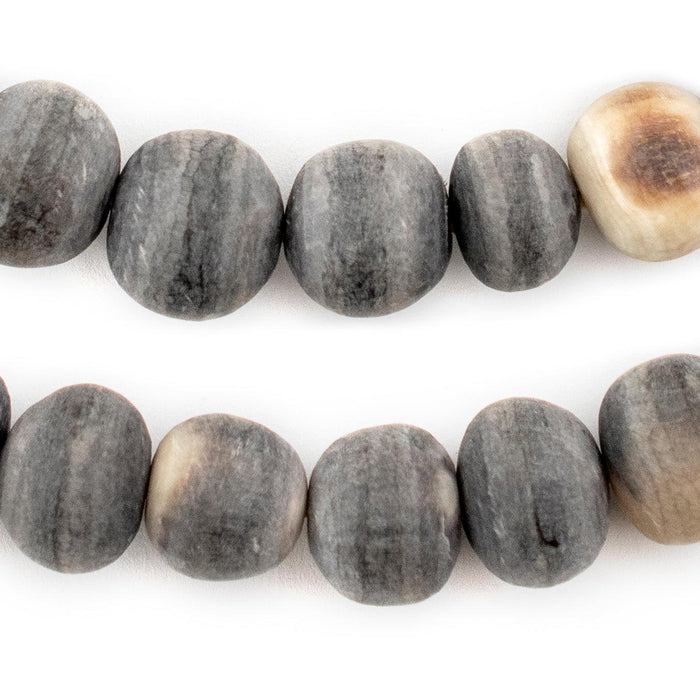 These grey color round beads are made from natural horn. The slight variations in colors and shape of the beads will make them a fun addition to your beading project. Look carefully and you will see that each bead is unique. Each bead measures approximately 12-23 x 16-24mm, with a hole size of approximately 3mm. You will receive one strand measuring approximately 36". Strand size may vary. There are around 45 beads on each strand. Grab a strand for your design kit today!
