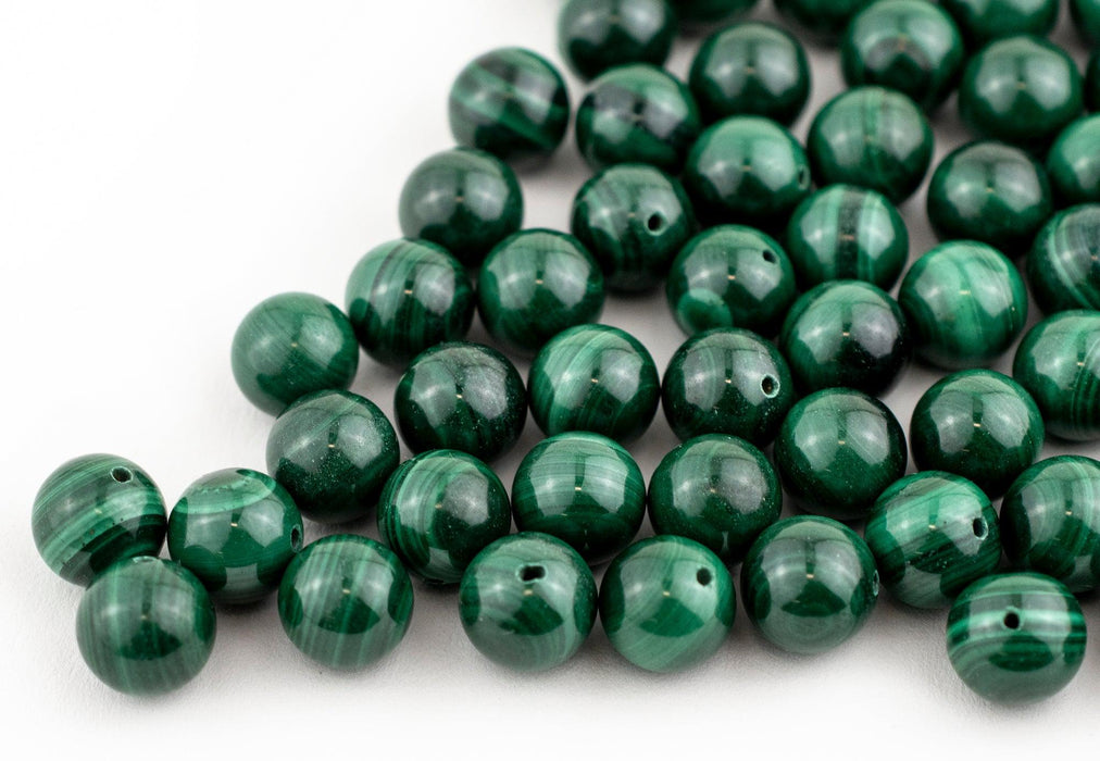 Half-Drilled Round Malachite Beads (10mm, Set of 80)