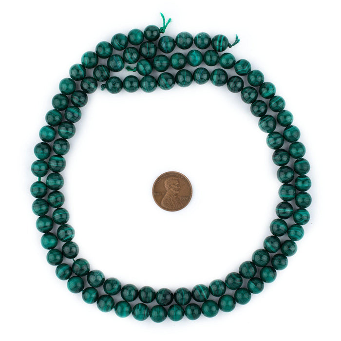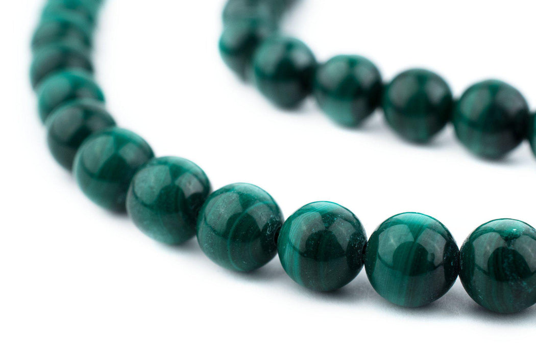 Take a moment to admire these stunning and luminous Malachite Stone beads. Malachite Stone beads are world famous due to their intricate and alluring patterns and its deep green color. Malachite can be found in places all over the world like Russia, Gabon, Mexico, France, Arizona, and Zambia. These Malachite stone beads will make for a great accent piece in almost any jewelry design. Each Malachite bead strand measures in at about 16" in length. Each Malachite bead is approximately 8 x 8-9mm and roughly has a 1mm bead stringing hole. Multiple strands pictured. Each strand sold individually. Each strand may show a slight variation in color and pattern. Get a Malachite Stone bead strand for yourself today!
