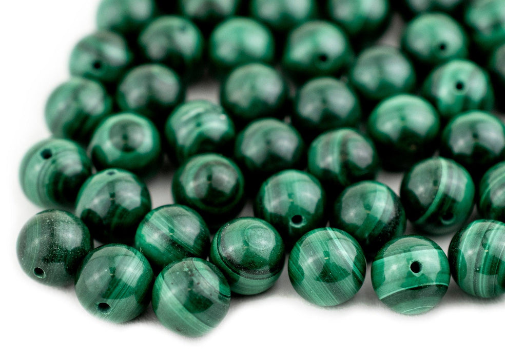 Half-Drilled Round Malachite Beads (8mm, Set of 90)