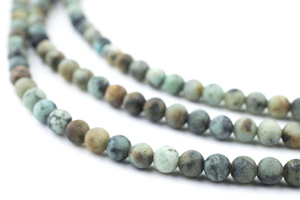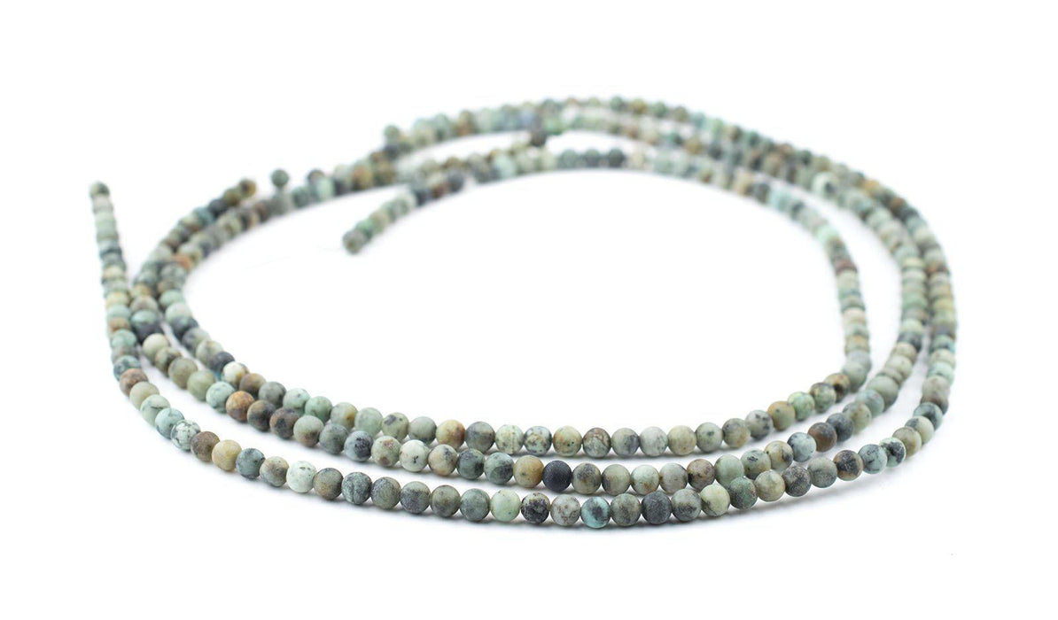 Check out this amazing strand of stone beads made from "African turquoise", which is sourced from African jasper mines. This brilliant and unique color will add an unmistakable accent to your jewelry designs. These beads are cut and polished in a natural round shape.