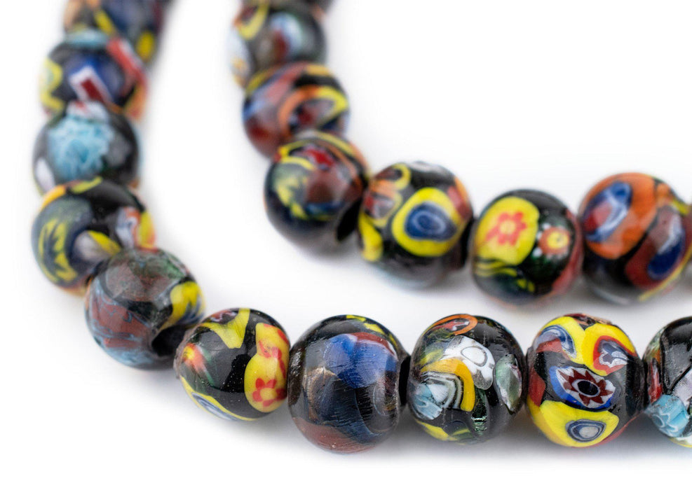 These exquisite millefiori beads are modeled after Venetian Trade Beads, made from multi-color chevron canes by slicing a glass cane, and forming it into the intricate flower designs these beads are known for. Because each bead is handmade individually, each one is unique and different with beautiful colors and variety of patterns and reflect artistic taste and craftsmanship. Each bead measures approximately 11-12 x 13-14mm with about 48 beads per strand. Beads have an approximate hole size of 3-4mm. You will receive a full strand measuring approximately 24". Look carefully and you will see little flowers patterned into each bead.