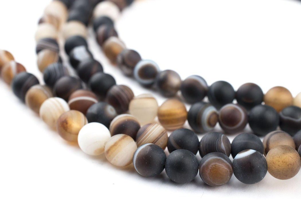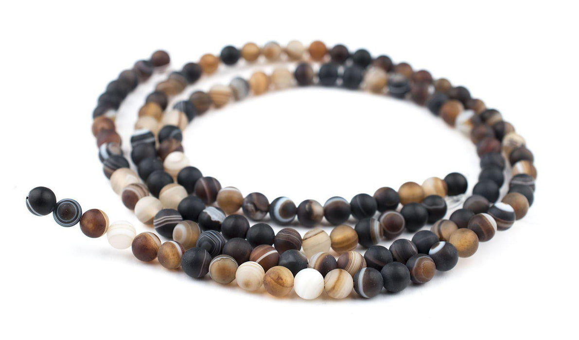 Admire this beautiful strand of natural agate beads. The unique character of the stone is shown through the swirl of tones that float across its surface. Each strand includes 60 beads with individual beads measuring 6mm. These great jewels will add some beautiful natural tones to your next jewelry design! Two strands pictured, however each strand is sold individually.
