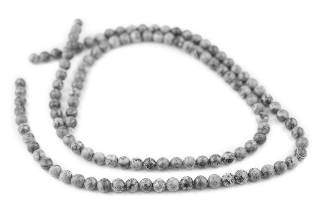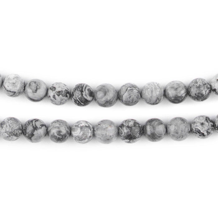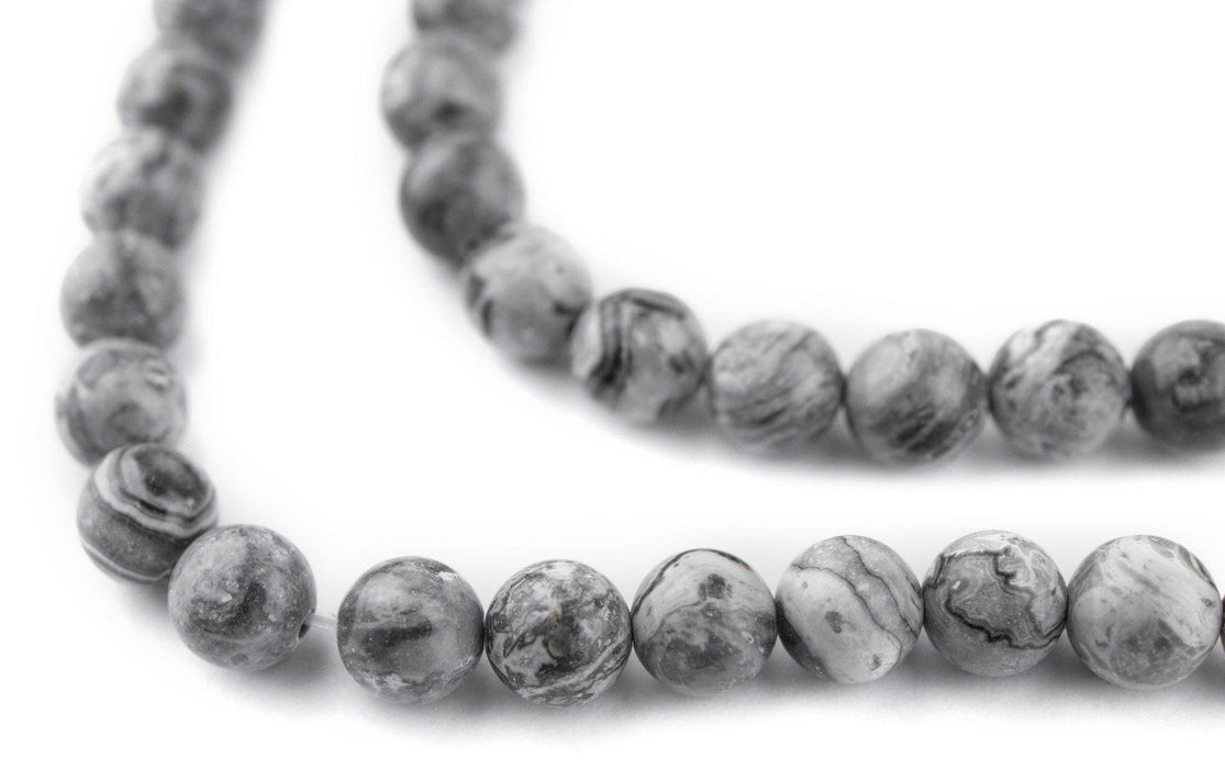 These beautiful grey gemstone beads are made of silver leaf jasper. Silver leaf jasper is considered by many to promote balance and stability. Pay attention to the grain of the stone and you will see how the different shades of grey, black, and white work together to create a natural beauty. Each strand measures approximately 16 inches in length, with beads measuring approximately 6 x 6-7mm each. Multiple strands pictured. Each strand sold individually. Get your strand today!