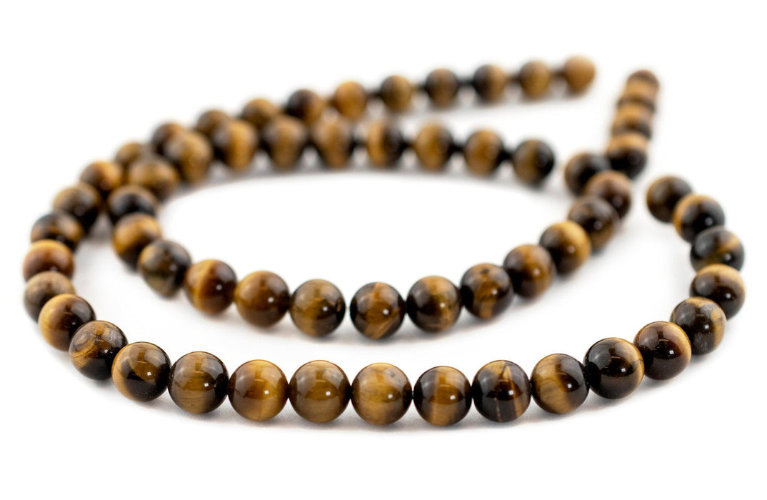 These natural gemstone beads are made from the metamorphic rock known as Tiger's eye. Tiger's eye is known for its golden color and silky luster. Stone for such beads is primarily mined in South Africa and Western Australia. In some cultures, Tiger's Eye is said to ward off the evil eye, and is also known for its therapeutic properties. These beads measure approximately 8 x 8mm, with each strand measuring approximately 18" in length. Hole size measures approximately 1mm. Multiple strands may be pictured. Each strand sold individually. Get yours today!