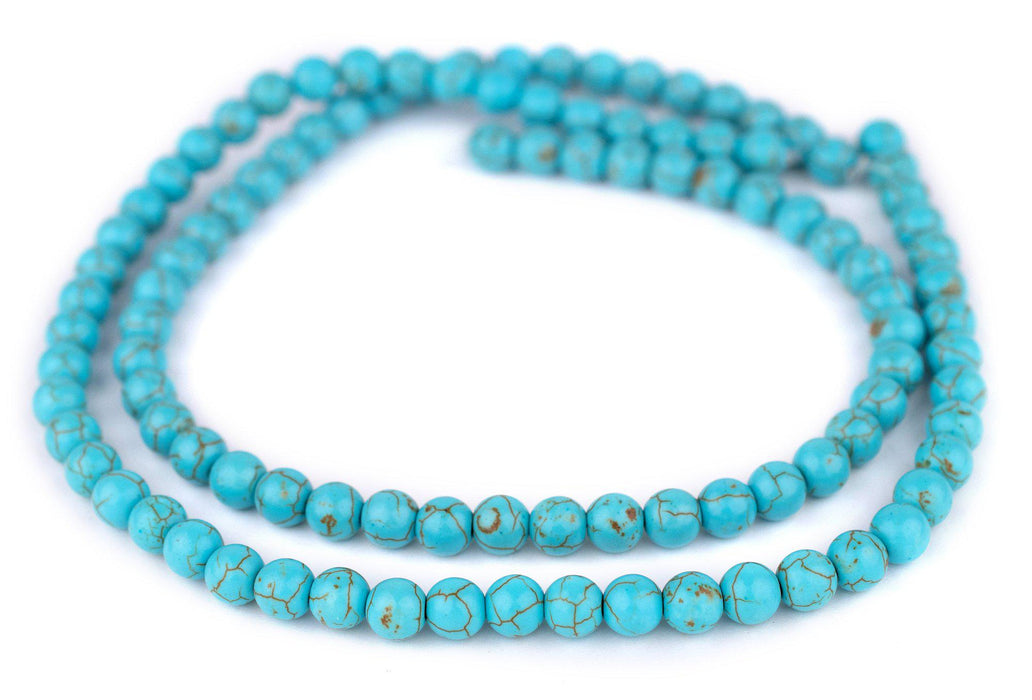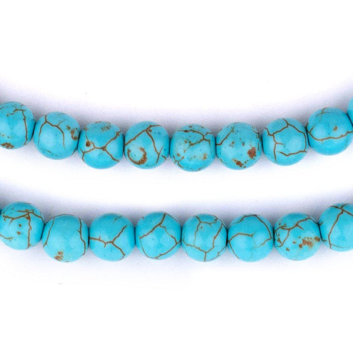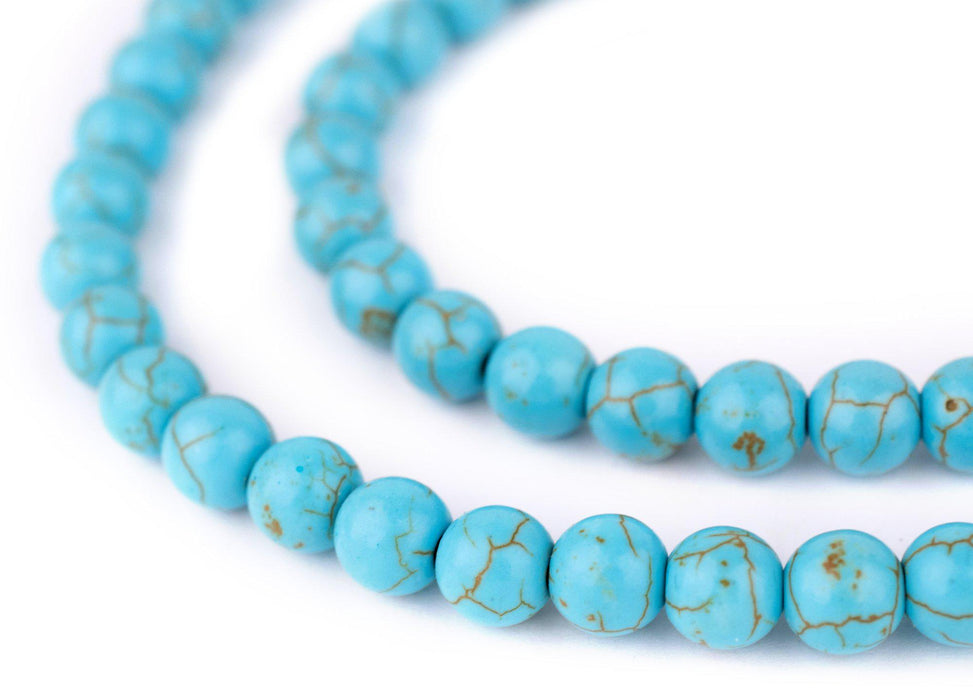 These faux turquoise stone beads will add a splash of color to any jewelry designs. Look carefully and you will see that many beads have a patterned surface to resemble the inclusions of natural turquoise stone. Available in a variety of sizes and shapes, this specific round bead measures 8 x 8mm with approximately 52 beads on each 15" strand. Try a strand of these beads today!