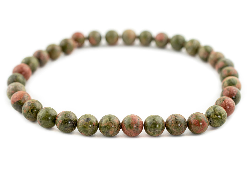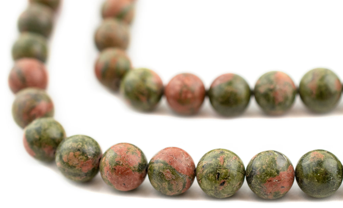 Unakite beads are a beautiful combination of green and pink that create a unique, mottled appearance. These semi-precious gemstones are often used in jewelry-making, particularly for bracelets and necklaces. In addition to their aesthetic appeal, Unakite is believed to have spiritual and healing properties. It is said to help balance emotions and bring a sense of calm and grounding, making it a popular choice for meditation and yoga practice. Some people also believe that Unakite can help with physical ailments such as headaches, muscle and joint pain, and the digestive system. Unakite is also associated with the heart chakra and is believed to promote love, compassion, and emotional healing. It is often used in crystal healing to help release negative emotions and promote forgiveness and understanding. Whether you're drawn to the unique beauty of Unakite beads or interested in exploring the spiritual and healing properties of gemstones, these beads are a stunning and versatile choice that are sure to inspire and delight. Each bead measures approximately 12 x 12mm with a hole size of approximately 0.5mm. You will receive a full strand measuring approximately 15".