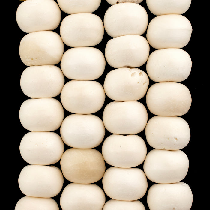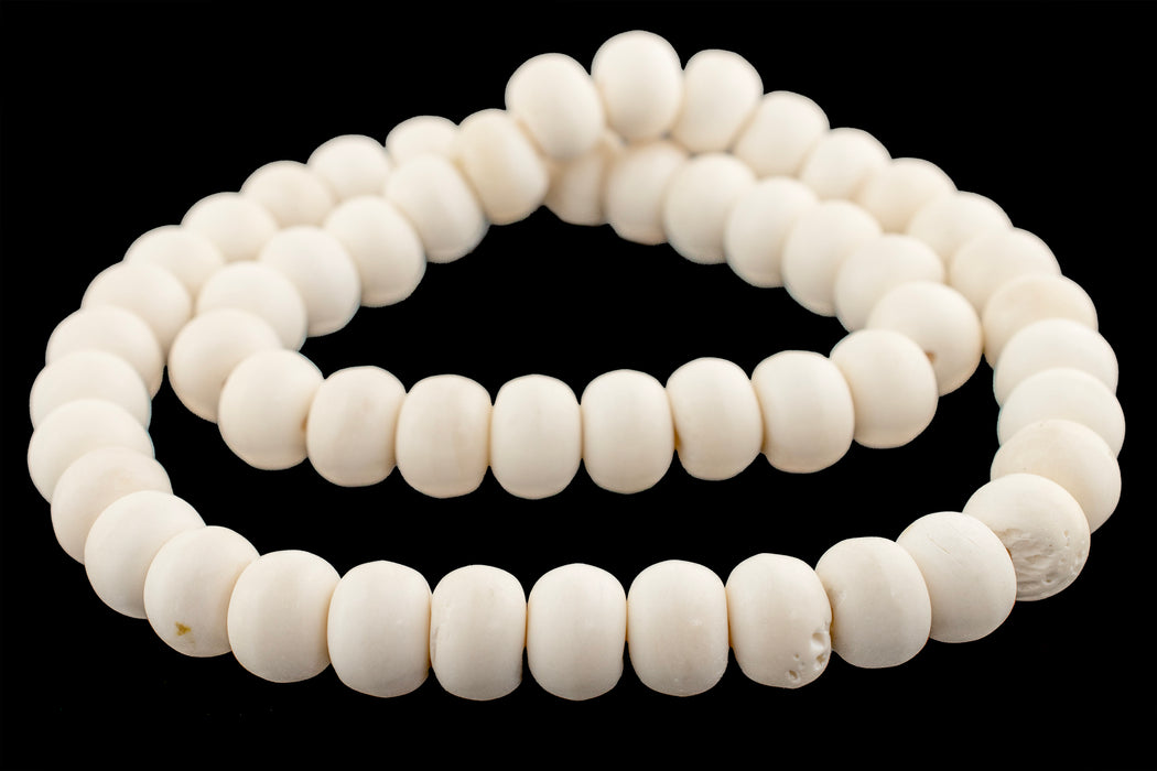 These large bone beads are a great choice for a bold jewelry design or home decor project. Handmade by artisans in Nepal, the natural bone is sure to add a beautiful touch and soft texture wherever you decide to use them. Each bead measures about 11 x 15mm with a hole size of approximately 2mm. You will receive a full strand measuring roughly 24". Grab a strand for your design kit today.