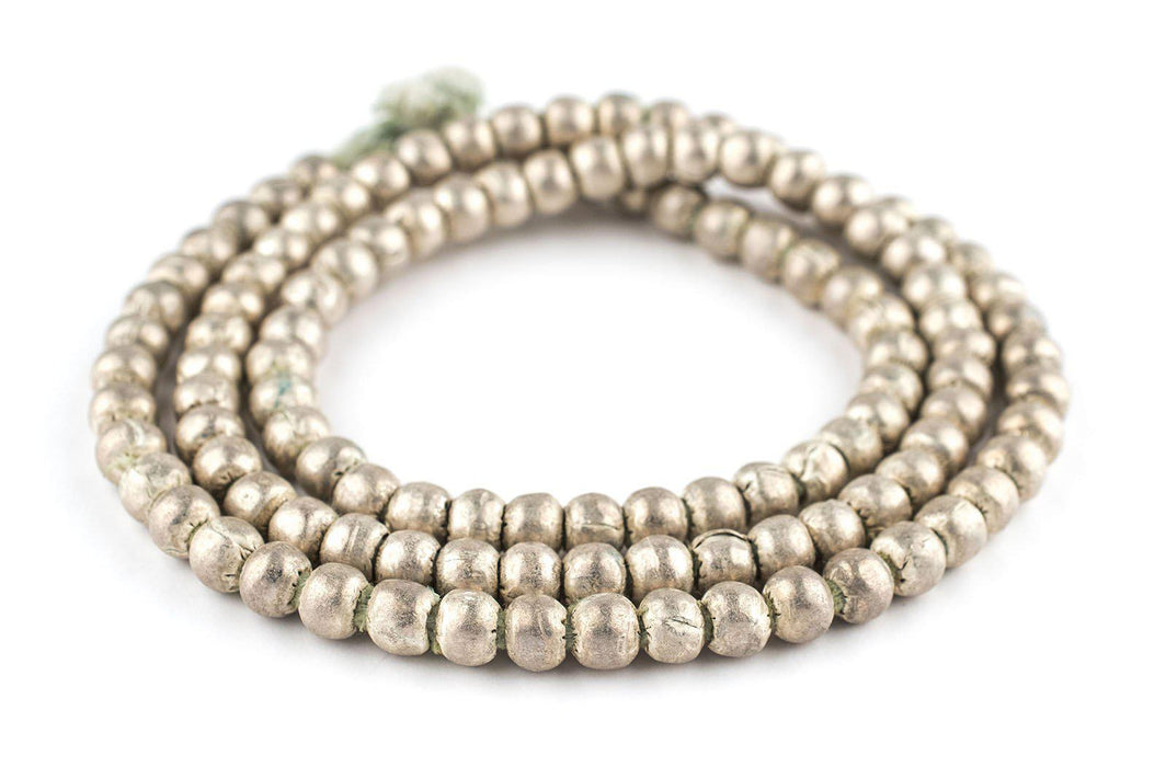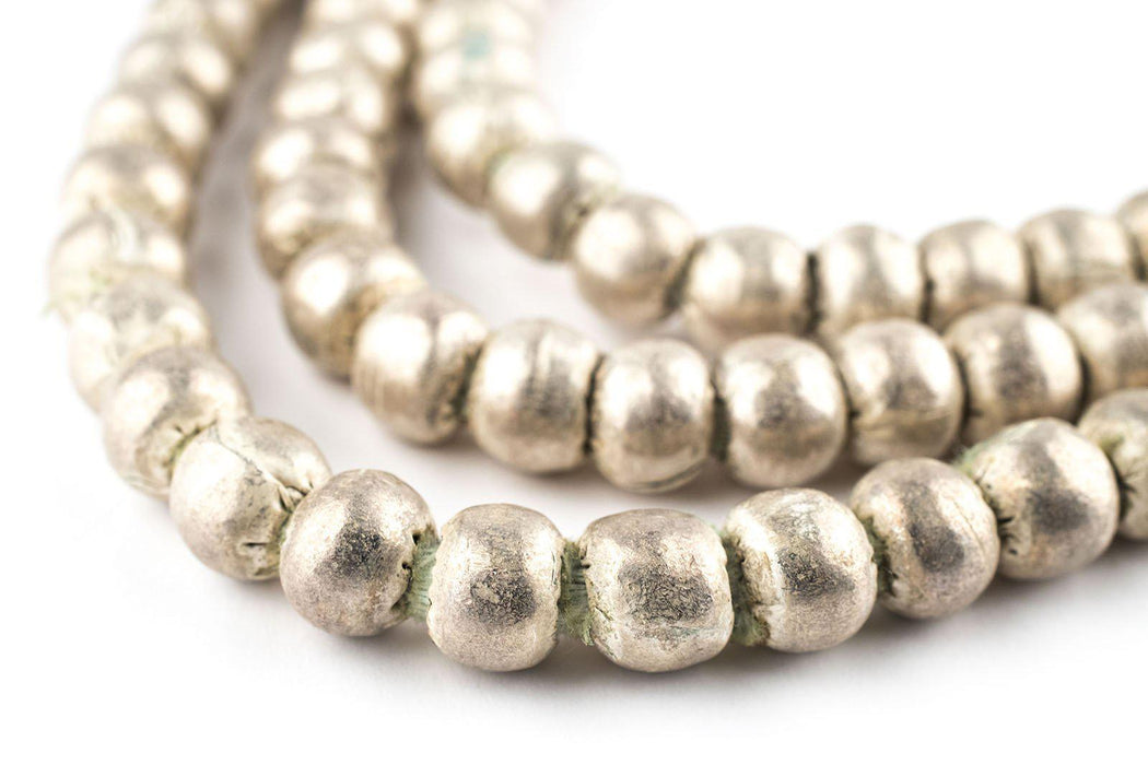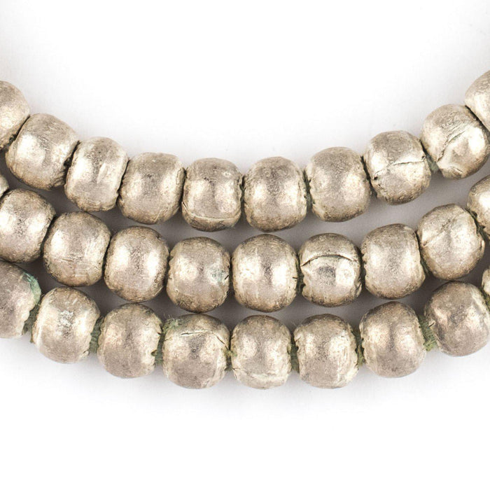 Round White Metal Ethiopian Beads (8mm) - Brushed Finish