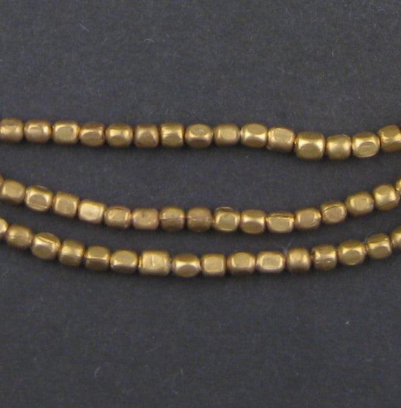 Beautiful strand of high quality, ethnic brass beads measuring 24" in length. Individual beads measure approximately 2.8mm wide by 2.3mm in diameter, with holes measuring 1mm. Each strand includes approximately 205 beads. These highly versatile beads make great spacers, or may be used to accent your unique beaded designs.