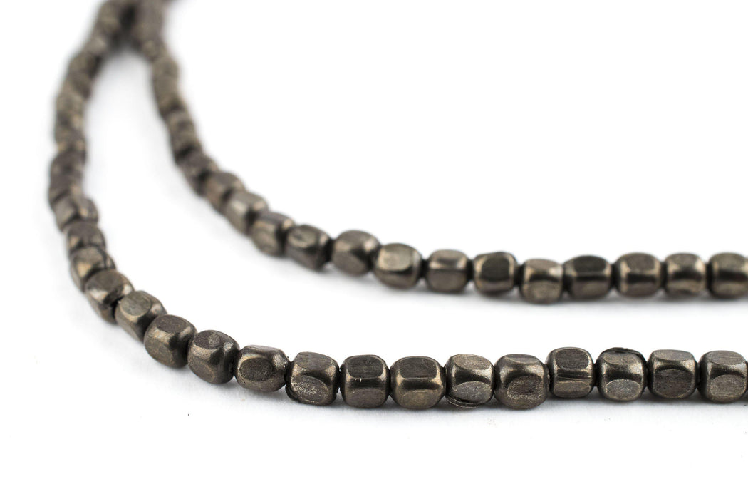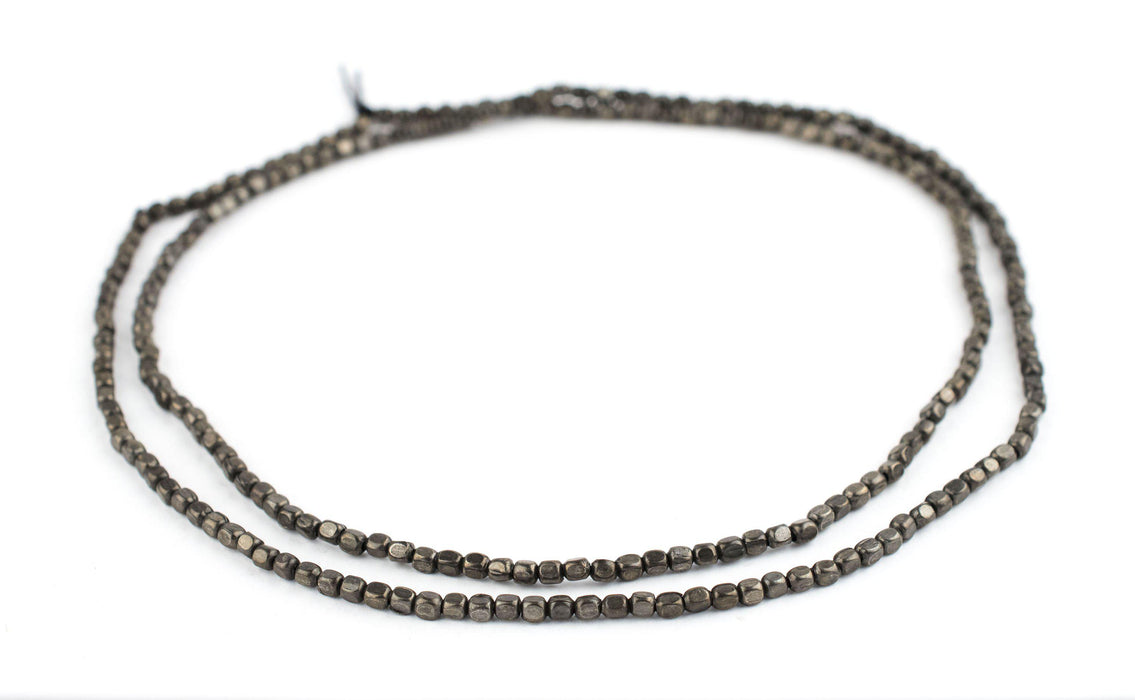 Take a look at this great strand of midnight brass metal beads fashioned in a rounded cube shape. Each order will consist of the equivalent of 20" inches or more of beads with approximately 130+ beads measuring 3 x 2.5mm. Beads will be shipped LOOSE and NOT on a string. These great beads are highly versatile and may be used as spacers or accents in your unique designs. A great addition to your beading toolkit!