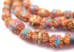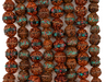 Take a look at this amazing strand of prayer beads made from authentic rudraksha seeds. Each unique bead has been inlaid with metal, turquoise or coral color bits. Inlaid metal may vary from brass to copper. The strand measures 31-36" long, with individual beads 8-9 mm in diameter. Another great strand of beads to add to your collection!