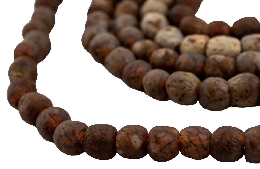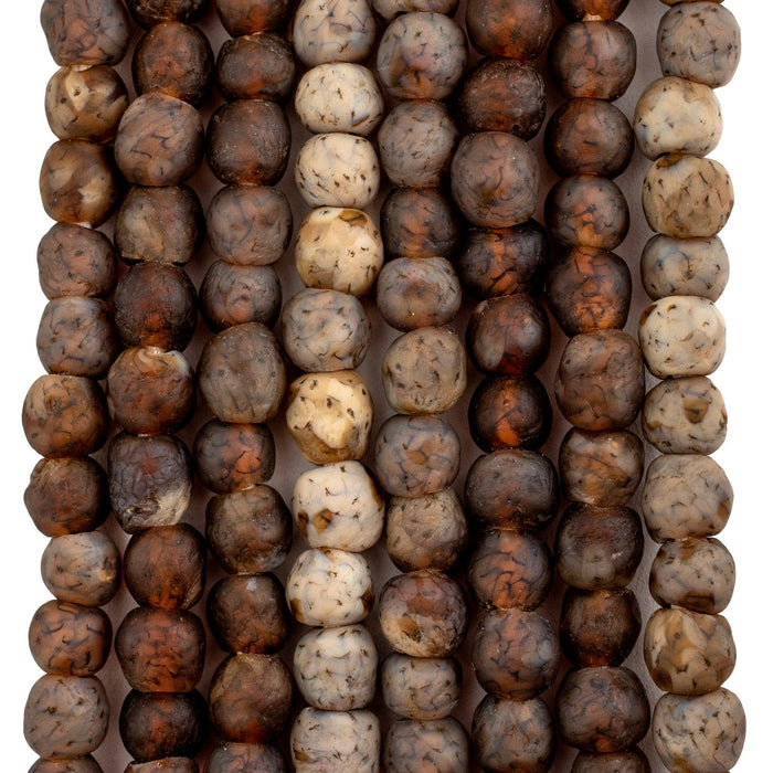 From the scenic villages of Ghana, these artisan Recycled Glass beads are made by hand by talented craftsmen. Beads like this are great to use in both custom jewelry design projects and interior design projects. Every strand is approximately 28" in length. Each bead is about 8-9mm diameter with a roughly 2mm hole. Each strand is sold individually. Grab a strand for yourself today!