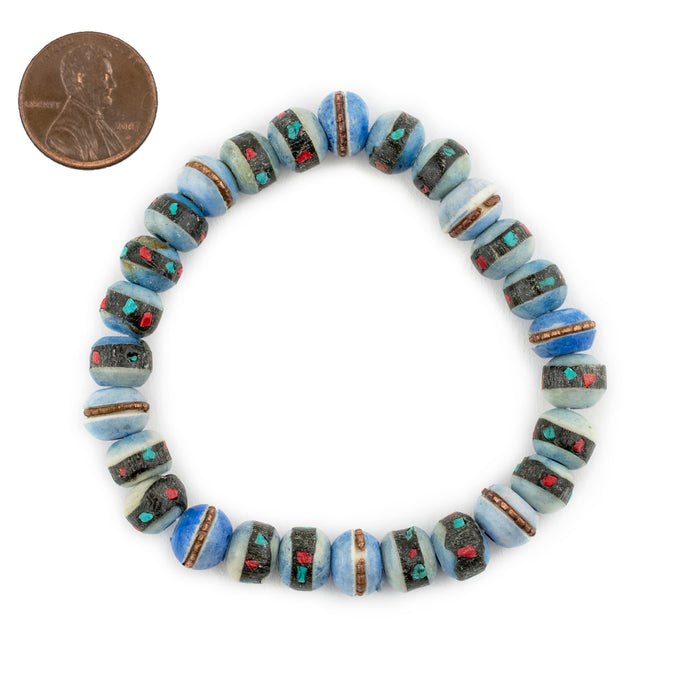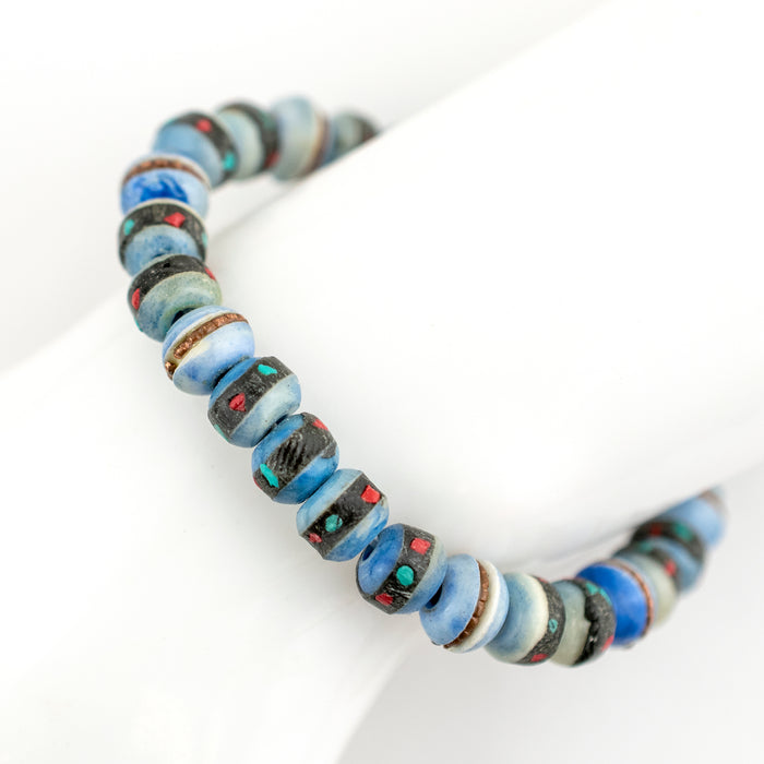 Malas are traditionally used in Buddhist culture as a part of the practice of meditation, however, today malas are enjoyed by people around the world looking to gain mental clarity and live in the present. Our collection of mala bracelets are handmade in Nepal using traditional inlaid beads. These beads are hand carved, inlaid with coral and turquoise style pieces, and strung 27 beads per 7 inch bracelet. Available in over 15 colors, choose your favorites to build your own unique stack! Beads may also be repurposed into your own unique jewelry designs. Grab one for yourself today!
