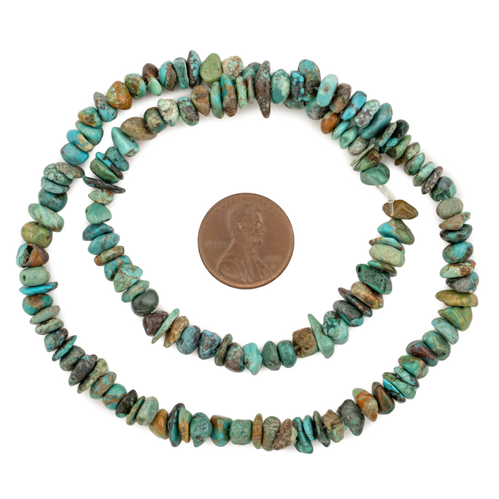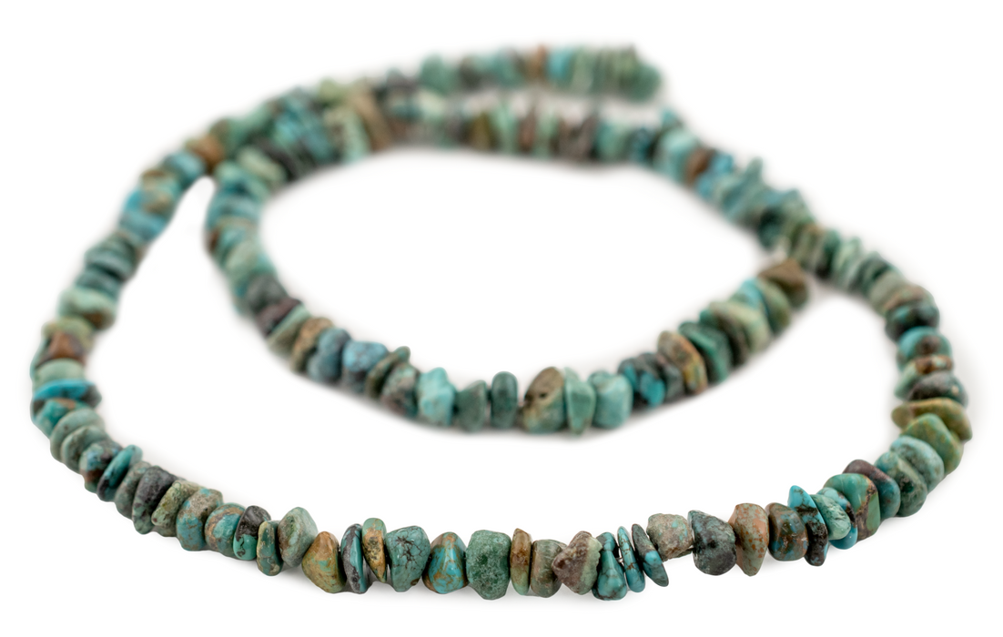 Great strand of turquoise chip beads with brilliant color nice marbling of matrix. These beads are sure to add a bit of richness or opulence to any beaded creation. Each 15-16" strand has beads measuring approximately 3-5 x 5-8mm. Highly versatile for all types of projects. Try them out for yourself today!