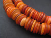 Take a look at these unusual saffron red colored shell heishi beads from Morocco, North Africa. Each strand measures approximately 22 inches in length and is tied with black cord. May be worn as is or use in your special jewelry. Look carefully and you may notice that unique seashell shine!
