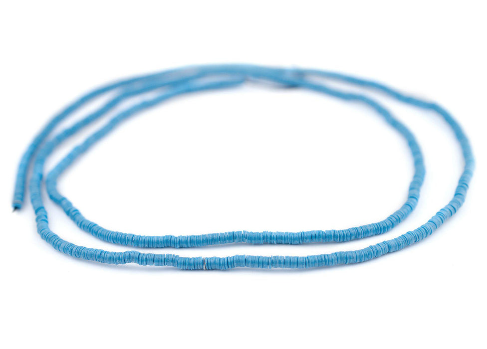 Take a look at this beautiful strand of African vinyl beads in a blue color. Beads such as these are found in Ghana and Nigeria where they are sometimes worn as waist beads. Older versions of vinyl beads were said to be made from recycled phonograph records. This strand measures approximately 34 inches long with individual beads measuring approximately 0.28 x 3mm, and a hole size of approximately 1mm. These beads are light and fun to wear and also versatile for jewelry designs. Each strand is sold individually. Available in a variety of sizes and colors. Mix and match to create your own medley!
