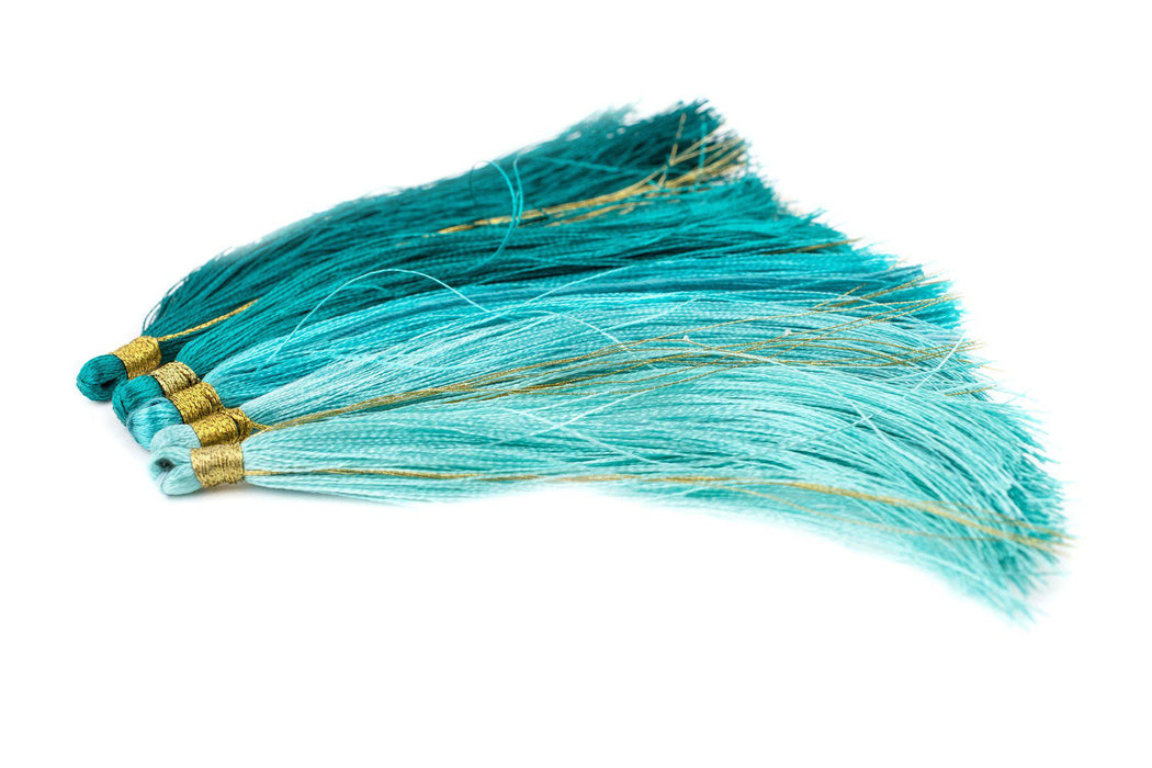 Shades of Aqua: 9cm Silk Tassels (5 Pack)