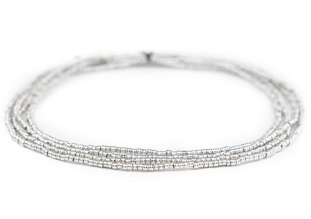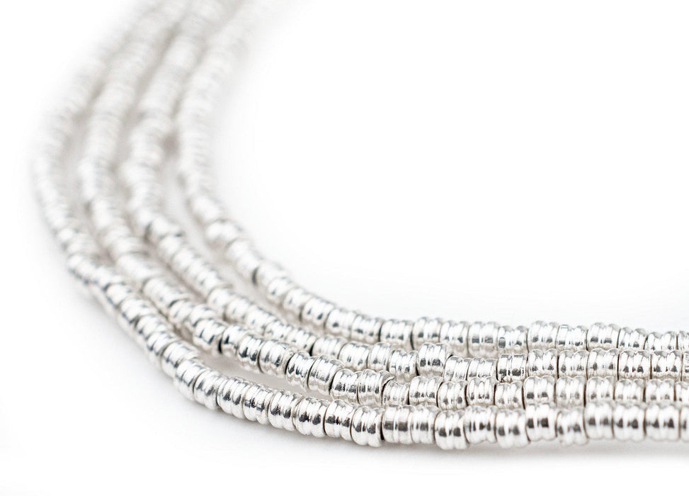 Beautiful strand of high quality, ethnic white metal beads measuring 24" in length. Individual beads measure 2 x 2mm in size, with holes measuring approximately 1mm. Each strand includes approximately 250 beads. These highly versatile beads make great spacers, or may be used to accent your unique beaded designs. Multiple strands pictured. Each strand sold individually.