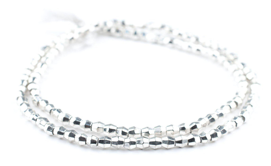 Take a look at this great strand of white metal beads fashioned in a faceted shape. Each strand is 24" inches long with approximately 120 beads measuring 5 x 5mm diameter. These great beads are highly versatile and may be used as spacers or accents in your unique designs. A great addition to your beading toolkit!