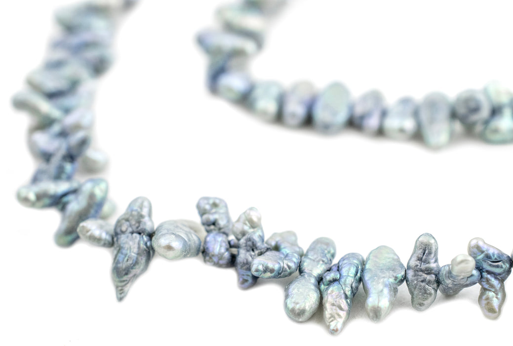 Silver Blue Nugget Vintage Japanese Pearl Beads (7-10mm)