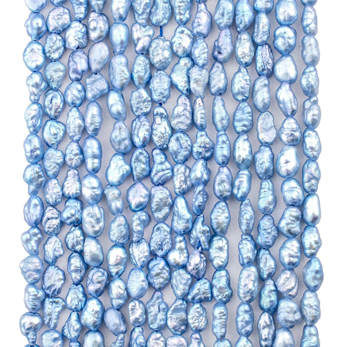Silver Blue Vintage Japanese Rice Pearl Beads (4mm)