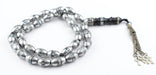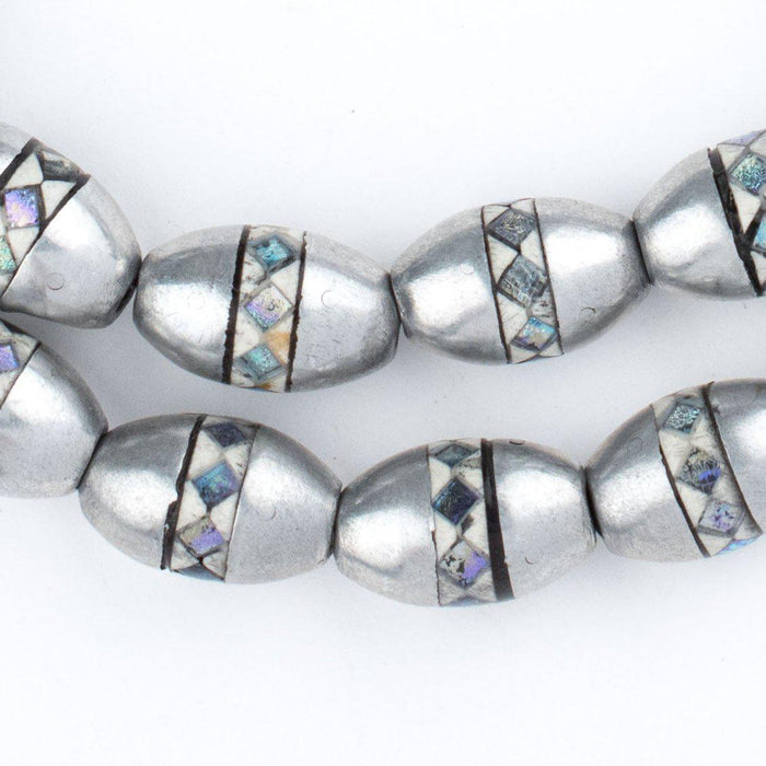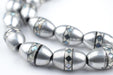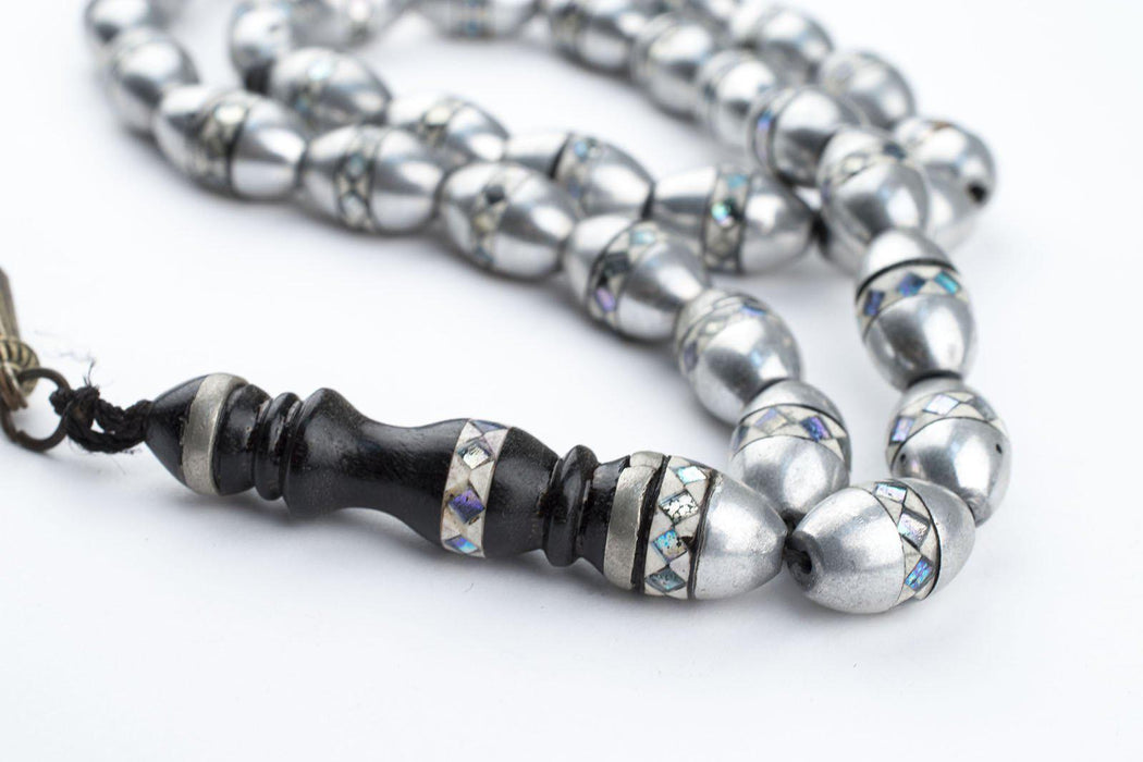 Evocative of a lost world, these beautiful Arabian prayer beads have been handcrafted by a master artisan. Look carefully and you will see that each bead has been exquisitely inlaid in meticulous detail, a quality of work hard to find in today’s day and age. The refined quality of these beads belies the long journey they have traveled through the back alleys and markets of North Africa. Prayer beads such as these embody the intersection artistic expression and faithful devotion that are a cornerstone of the Islamic world. Each bead on this strand measures approximately 14-15 x 10-11mm with hole size of 1mm and strand length of 22-27" long. Metal inlay may not be sterling. Use as-is or to accent your beaded creations. Limited Supply. Get yours today!