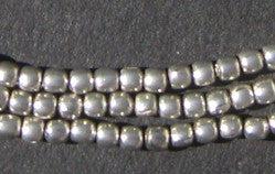 Beautiful strand of Silver Color Tiny beads from Ethiopia!. Beads are about 2mm long with a diameter of approx. 2mm. The strand is approx. 24-25 inches long.