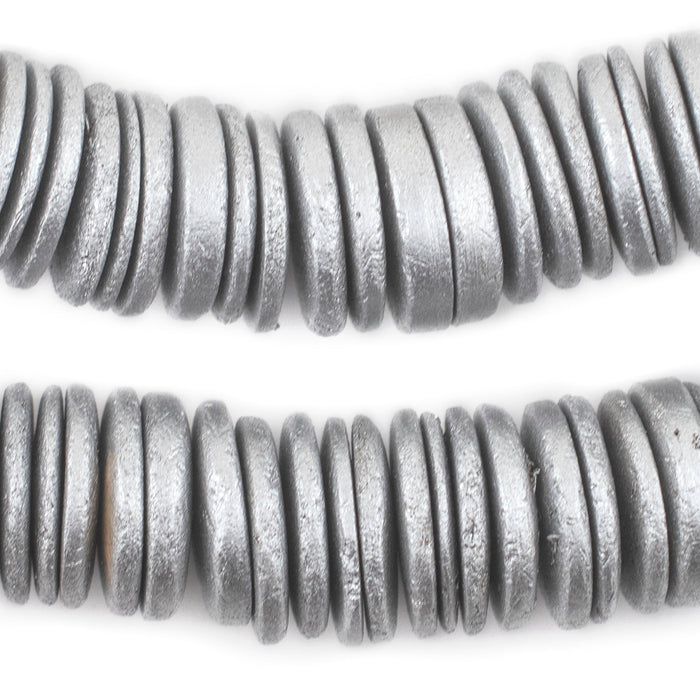 Silver Disk Coconut Shell Beads (20mm) (5 Pack)