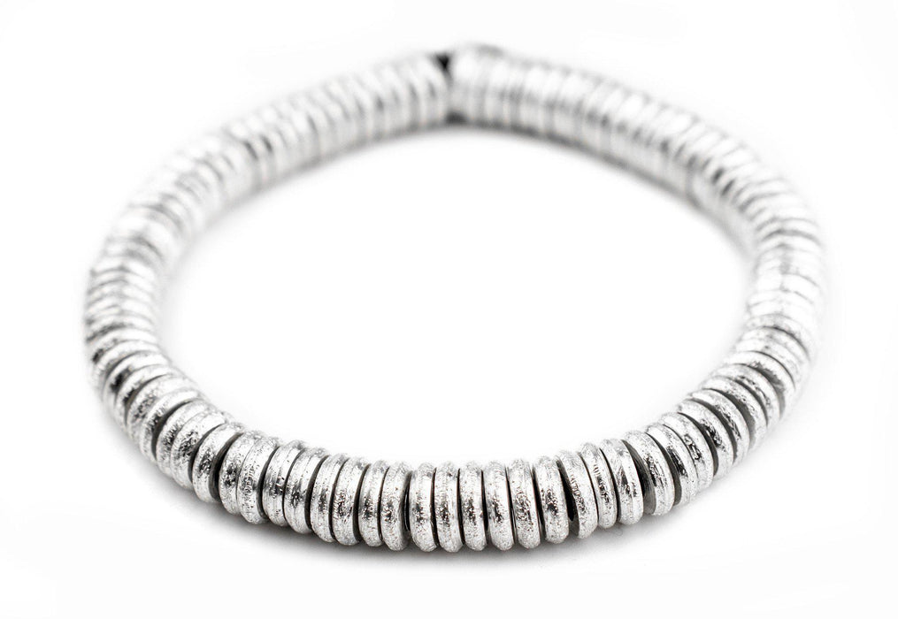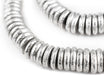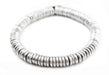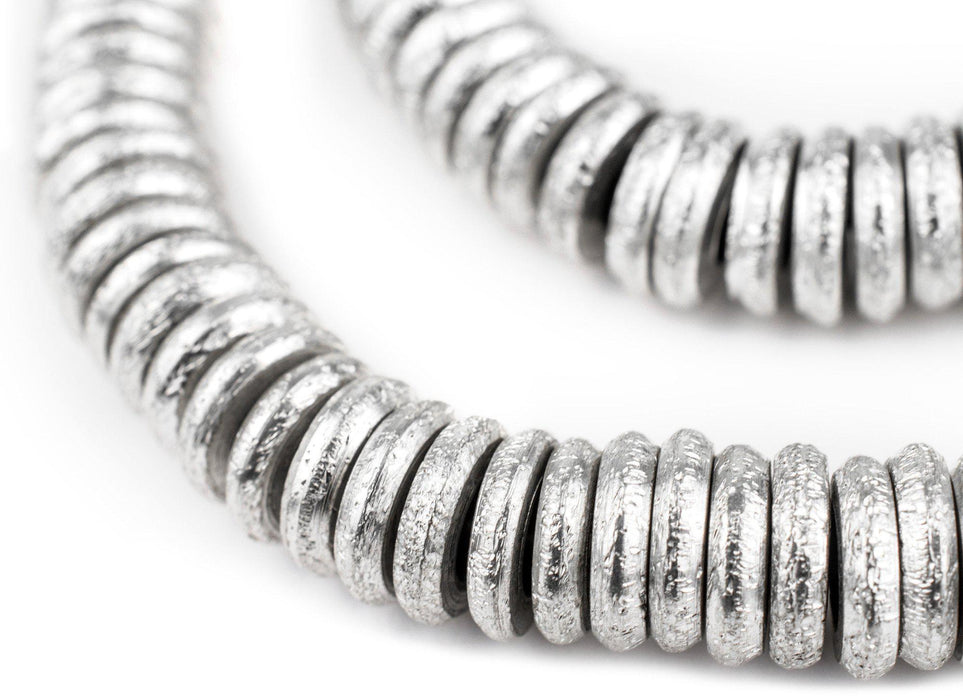 Take a look at these striking White Metal Silver Toned Donut Beads. Silver Donut Beads like this make for a great accent piece or spacer in most custom jewelry designs. Each artisan bead strand is about 10" in length. Each handcrafted bead is approximately 2 x 10mm and roughly a 4-5mm bead stringing hole. Add a pop of bright silver to your custom designs today!